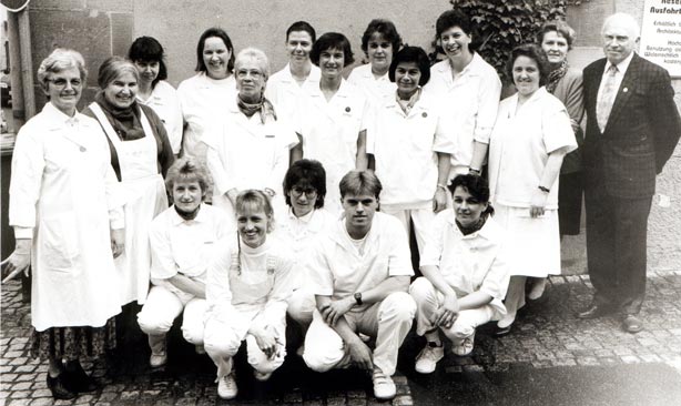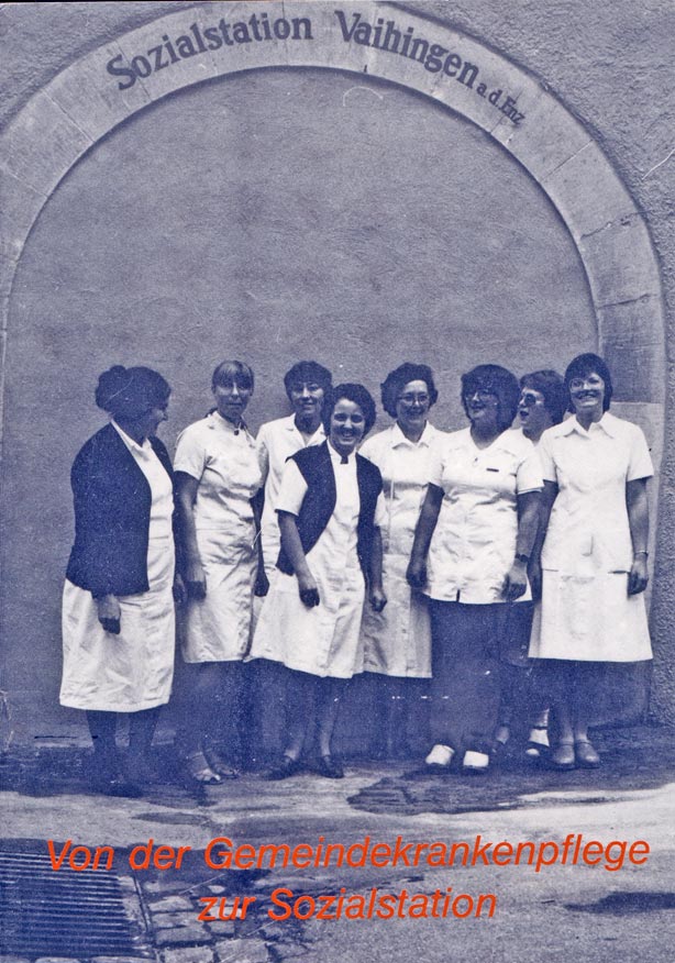 Zum 1.1.1997 findet die Fusion der Sozialstation Vaihingen, der Diakoniestation Eberdingen und der Krankenpflegestationen Sersheim und Oberriexingen zur Sozialstation Vaihingen statt. Auf dem Bild sind die "Eberdinger" Schwestern zu sehen.